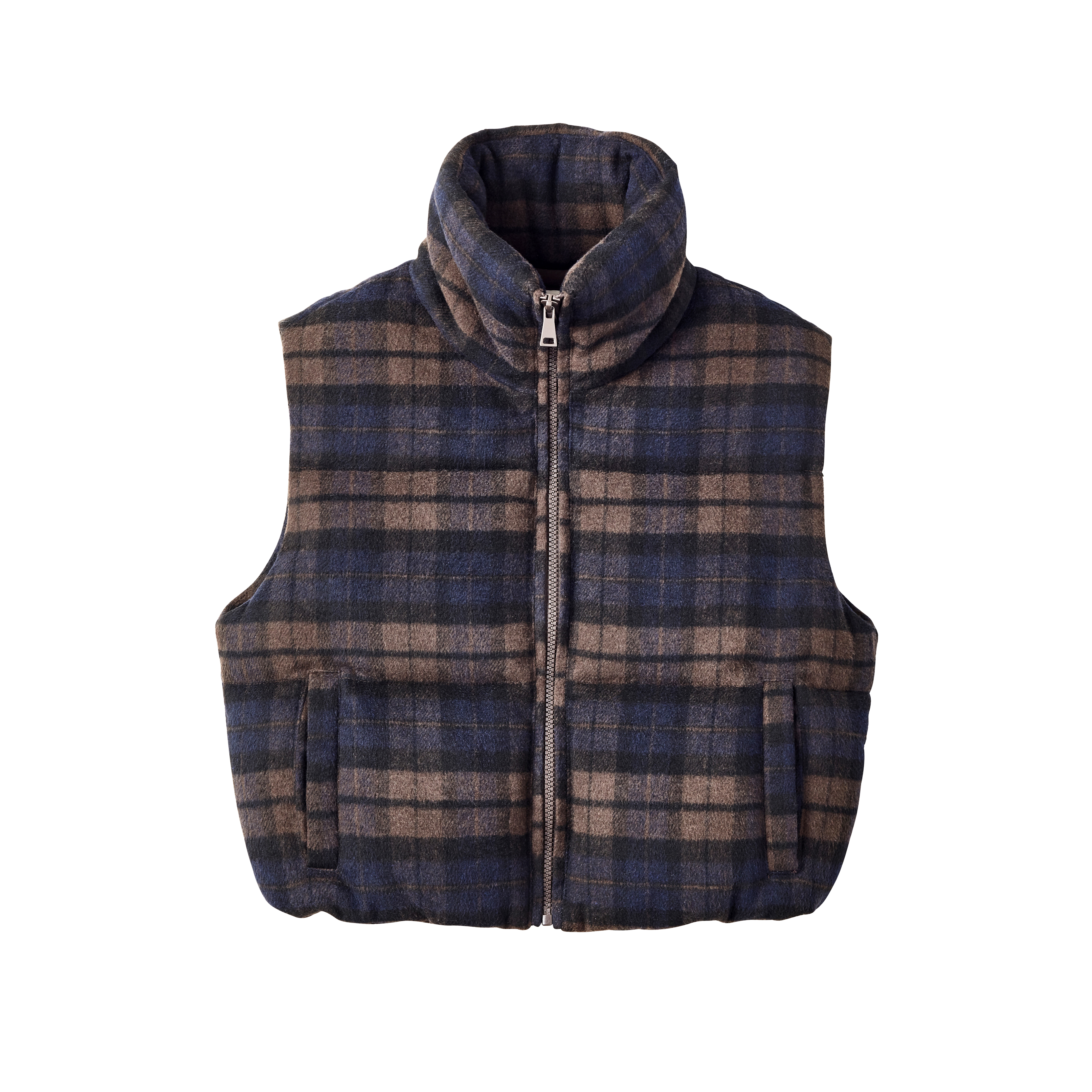 Veste sans manche courte matelassée à carreaux écossais